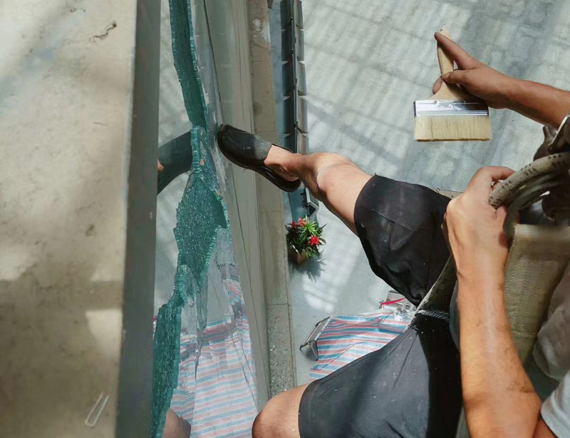 第二步,工人從底層乘坐吊籃,到相應樓層拆除玻璃,拆除后測量高度和寬度,如果是彎玻璃要測量曲度。拆除干凈,得出高寬數據,然后在定做相應的玻璃,根據客戶要求定做類型。